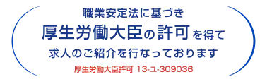有料職業紹介事業 厚生労働大臣許可 13-ユ-309036